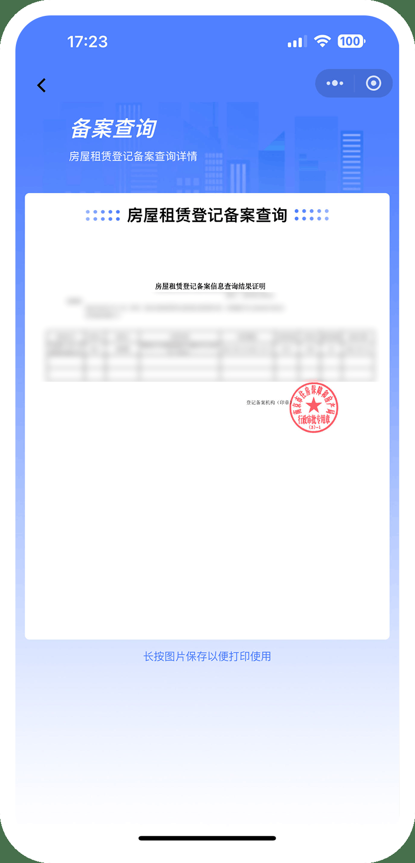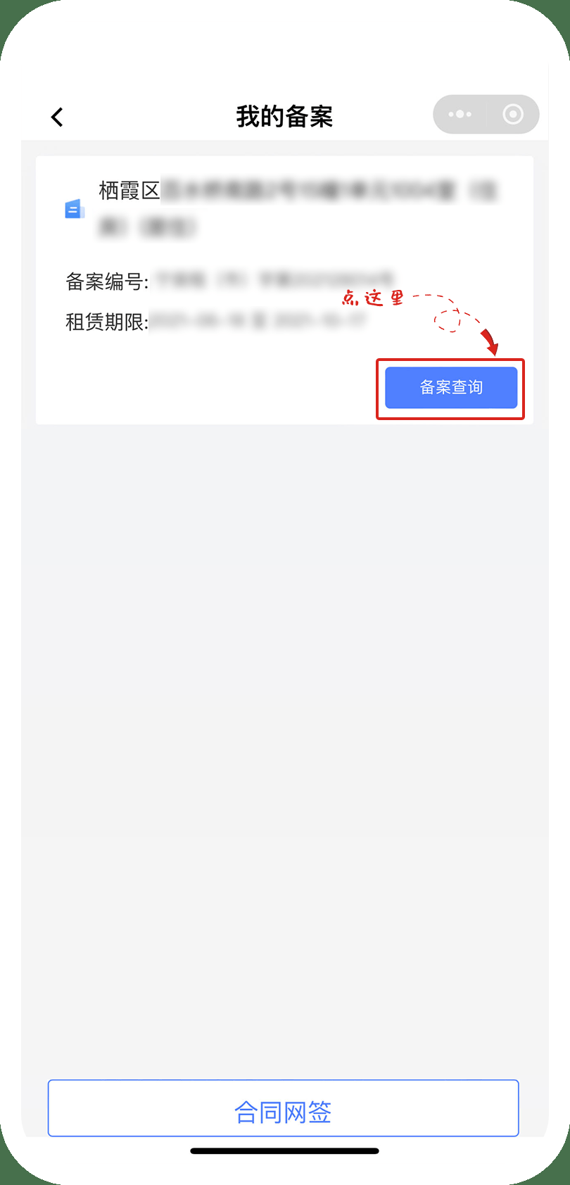 完成合同网签后,点击“宁慧租”小程序的“租赁备案”功能,已经签约好的合同会自动出现在这里,承租人点击出租房源旁边的“备案查询”即可获取“房屋租赁登记备案证明”。这是毕业生申请在宁租房补贴的必要材料之一。