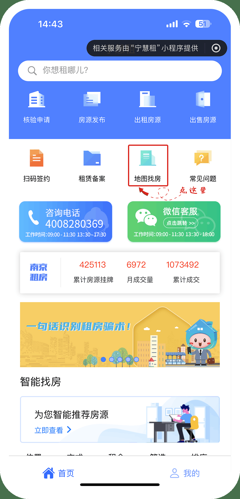 “房帮宁”平台为大家提供了快捷安全的找房渠道,登录“房屋租赁·宁慧租”, 可以通过要素筛选、地图找房、智能推荐等方式寻找心仪的房源。