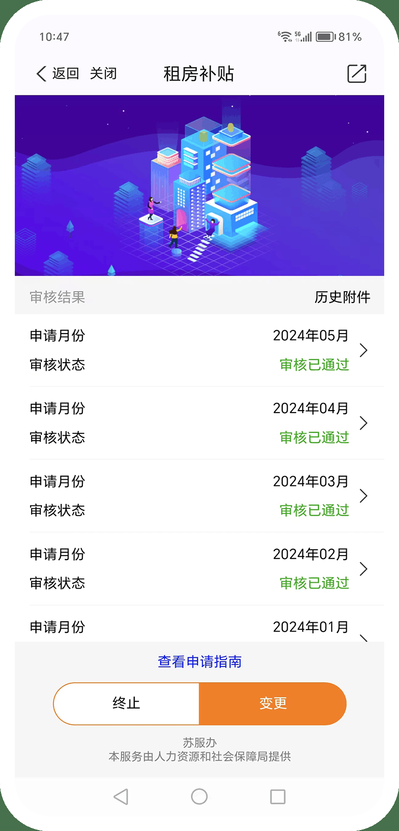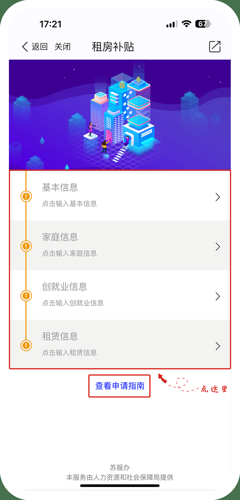 2️⃣在“租房补贴”模块,点击“查看申请指南”提前了解申请步骤和详情。