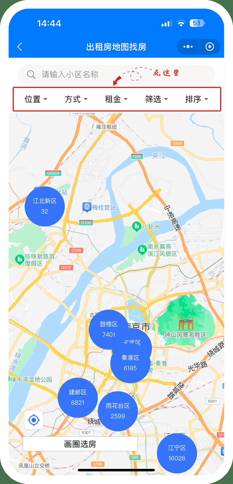 本方式适合已经确定租房范围的人群。打开“地图找房”功能,点击进入“找出租房”,可以通过多种要素筛选或者直接点击各个区域,进入街道精确地理位置查看小区出租房情况。
