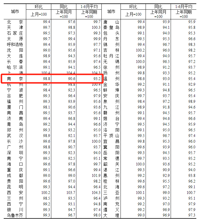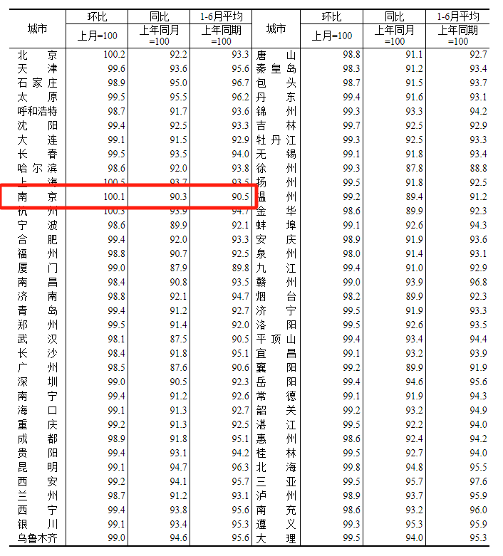 6月份,一线城市新建商品住宅销售价格同比下降3.7%,降幅比上月扩大0.5个百分点。其中,北京、广州和深圳分别下降2.4%、9.3%和7.7%,上海上涨4.4%。二、三线城市新建商品住宅销售价格同比分别下降4.5%和5.4%,降幅比上月分别扩大0.8个和0.5个百分点。