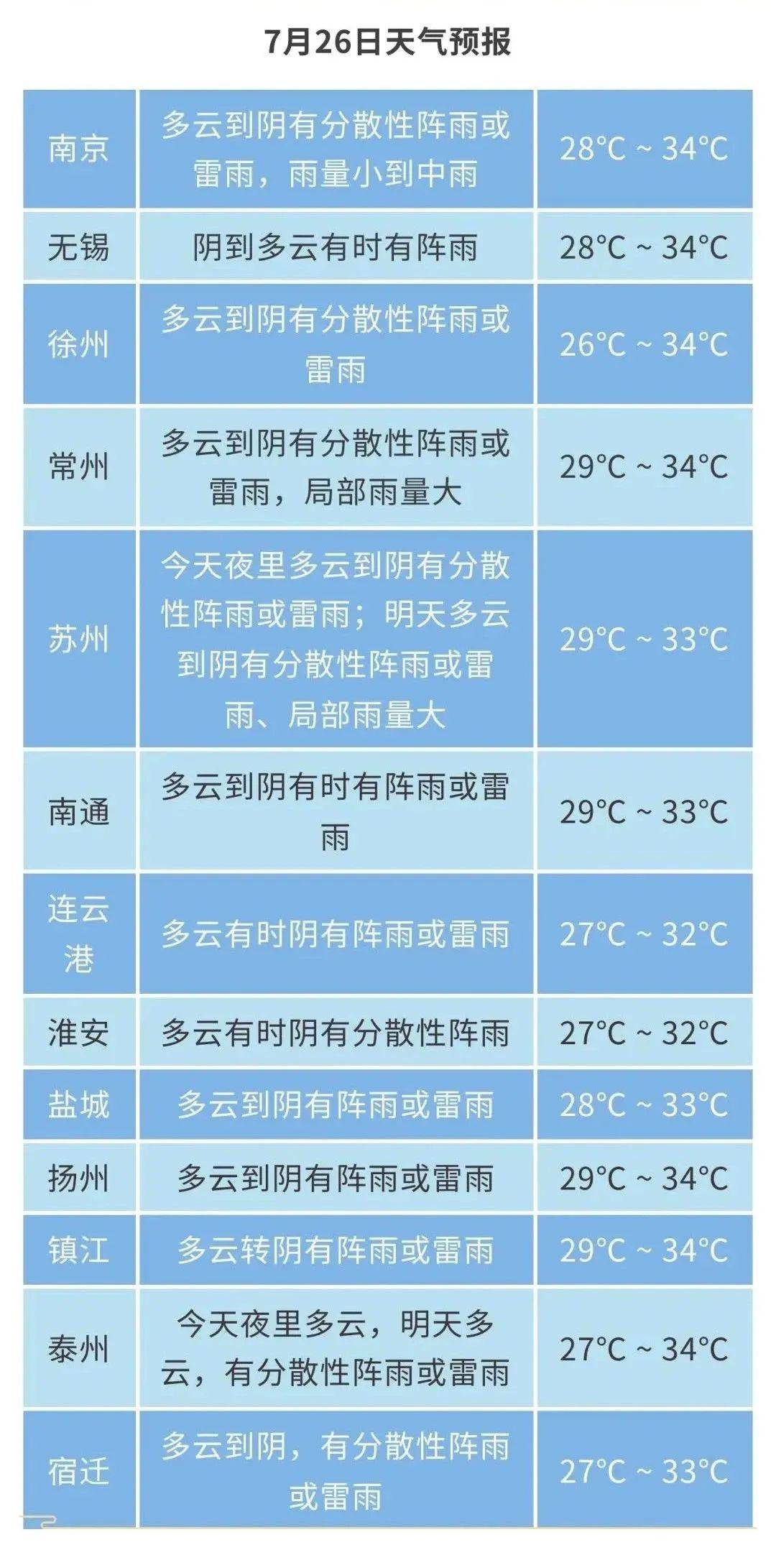受台风影响,26-28日江苏全省阴有阵雨或雷雨,风力逐渐增大。