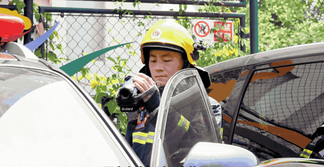 消防员点燃打火机