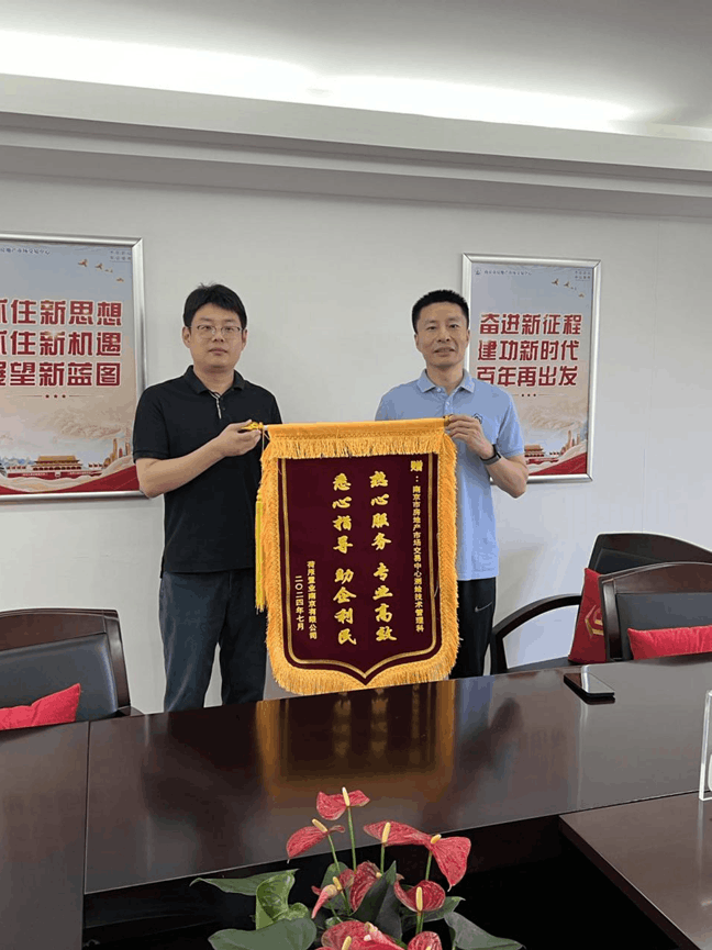 “热心服务 专业高效 悉心指导 助企利民”,7月30日,当市交易中心将南京中华城京东MALL测绘审核报告完结,交到其建设单位——荷原置业南京有限公司(以下简称“荷原置业”)相关工作人员手中时,该工作人员也将一面鲜红的锦旗庄重地交到了市交易中心测绘技术管理科工作人员的手中。“万万没想到,在体量巨大、资料要件缺失、临时变更多等如此多‘拦路虎’的影响下,你们仅用两周时间就指导、协助做好了测绘工作,并完成了审核,为我们各项工作进展节省了很多时间,太感谢你们了!”荷原置业工作人员激动地说。